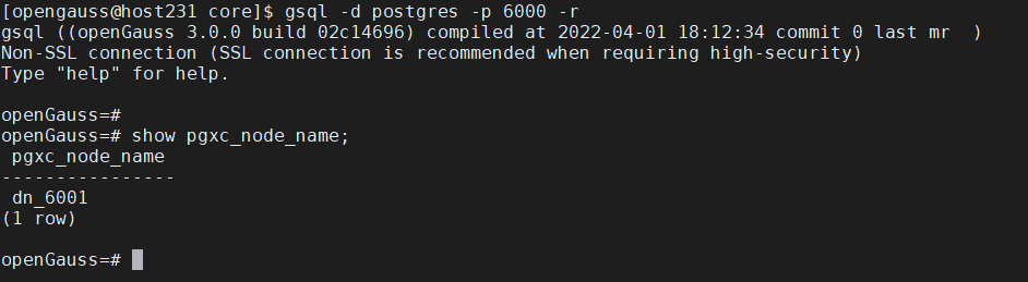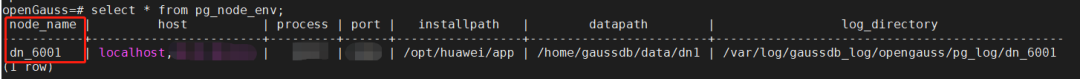 1)查询 pgxc_node_name参数值,或者使用查询视图:pg_node_env。