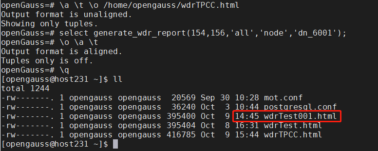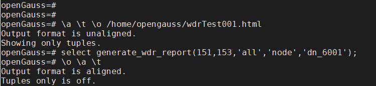 \a \t \o home/opengauss/wdrTest.html