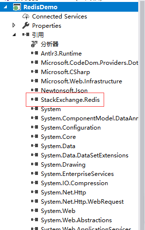 通过这两步,会在项目中自动添加StackExchange.Redis引用