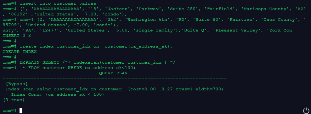 EXPLAIN SELECT /*+ indexscan(customer customer_idx ) */
