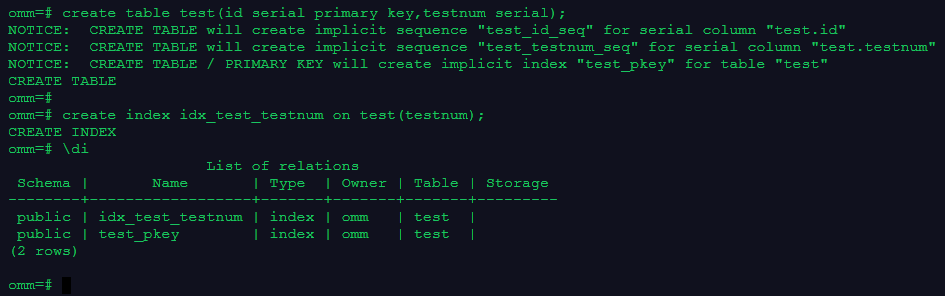 掌握openGauss DBMS索引的管理:创建索引、删除索引、查询索引的信息、修改索引的信息。