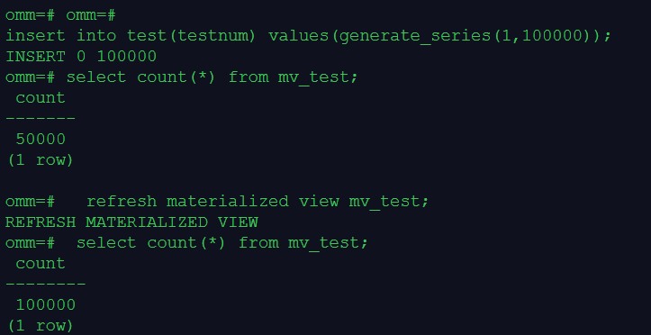 --手动更新物化视图,并查看更新物化视图后,物化视图有多少行记录: