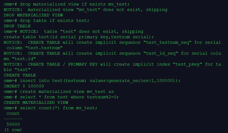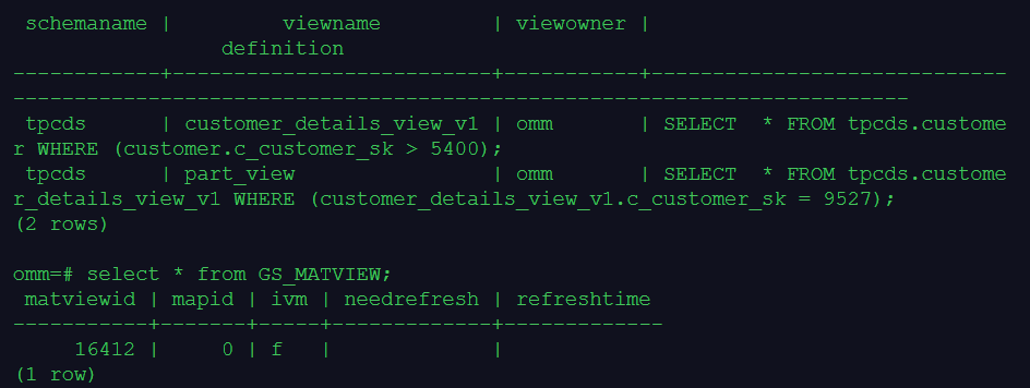 --GS_MATVIEW系统表提供了关于数据库中每一个物化视图的信息。