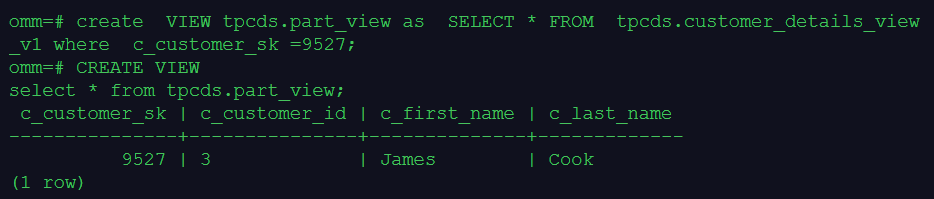 create VIEW tpcds.part_view as SELECT * FROM tpcds.customer_details_view_v1 where c_customer_sk =9527;