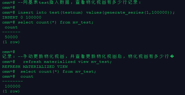 omm=# insert into test(testnum) values(generate_series(1,100000));