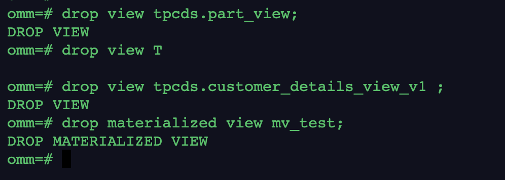 --删除普通视图omm=# drop view tpcds.part_view;