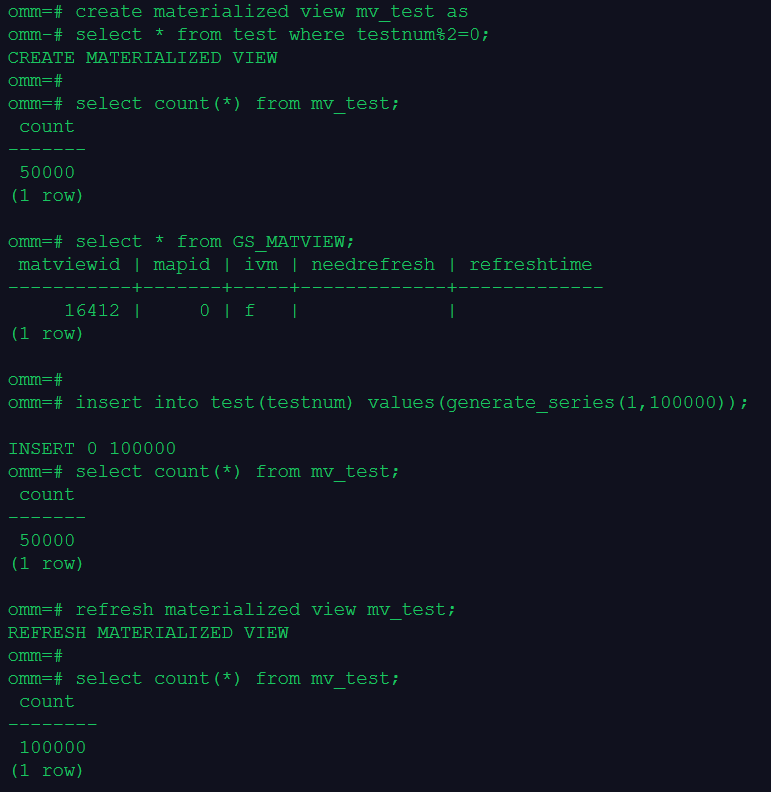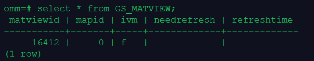 --GS_MATVIEW 系统表提供了关于数据库中每一个物化视图的信息。