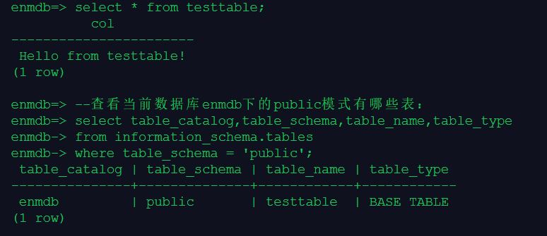 2.使用一个用户连接到enmdb数据库,测试该用户可以访问不同模式中的表: