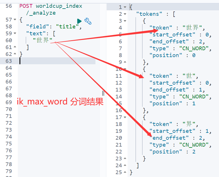 看这里,和 analyzer 分词有关系,我们的字段 title 设置的是 text 类型,选择的分词器:ik_max_word 分词器。