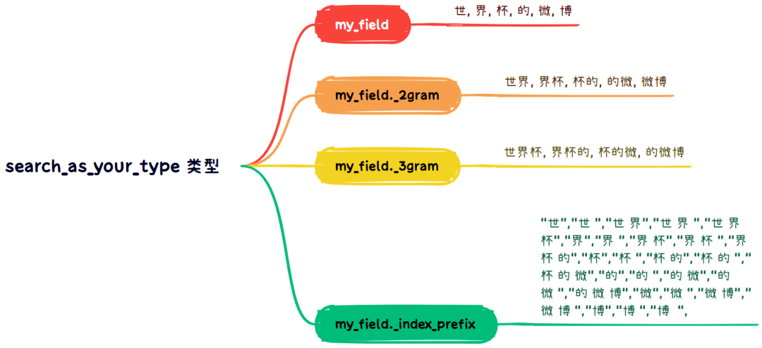 分词间接解决前缀匹配检索。方案四: Search as your type