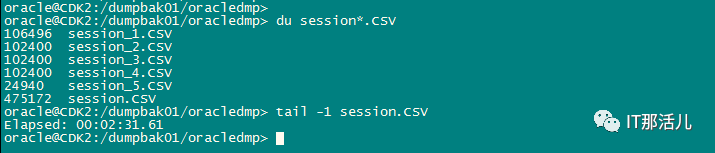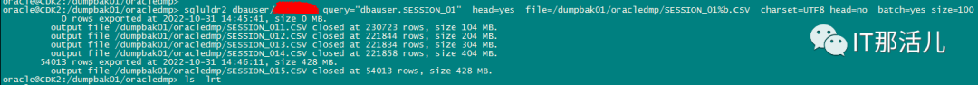 file=/dumpbak01/oracledmp/session_%b.CSV charset=UTF8