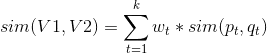 代表的是向量的两个分量之间的相似度。可以采用Jacard相似度等各种方法计算两个分量之间的相似度。上面公式中还可以针对不同的分量采用不同的权重策略,见下面公式,其中是第t个分量(特征)的权重,具体权重的数值可以根据对业务的理解来人工设置,或者利用机器学习算法来训练学习得到。