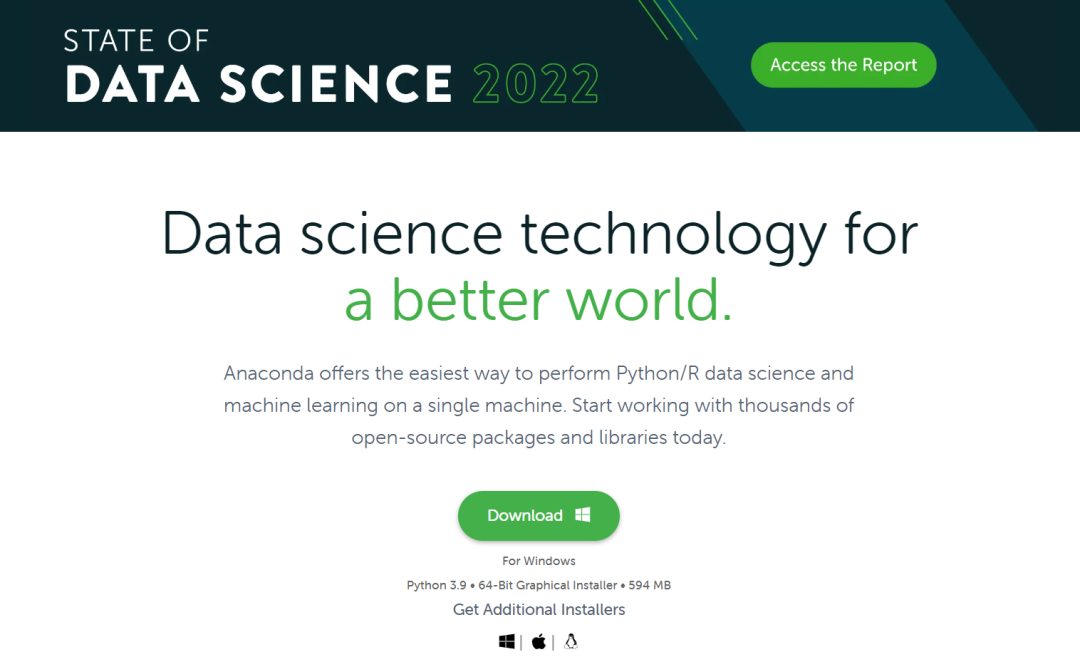 下载并安装 Python, 其中包括 Python、Spyder IDE 和 Jupyter notebook。我建议使用 Anaconda,因为它很受机器学习和数据科学社区的欢迎和使用。