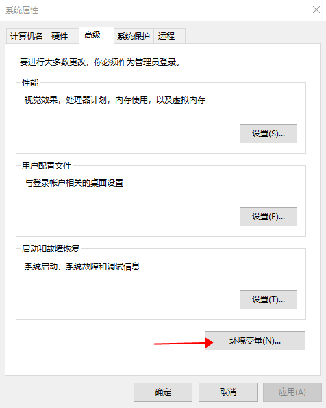 1.打开编辑系统环境变量窗口,在高级选项卡下选择环境变量。