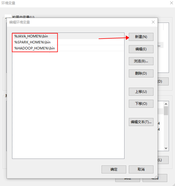 5. 通过选择新建选项添加 Spark、Java 和 Hadoop bin 路径。