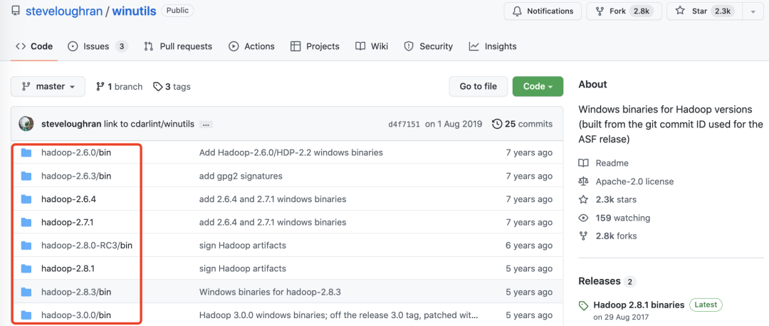 文件夹中。Winutils 对于每个 Hadoop 版本都不同,因此请从下载正确的版本。
