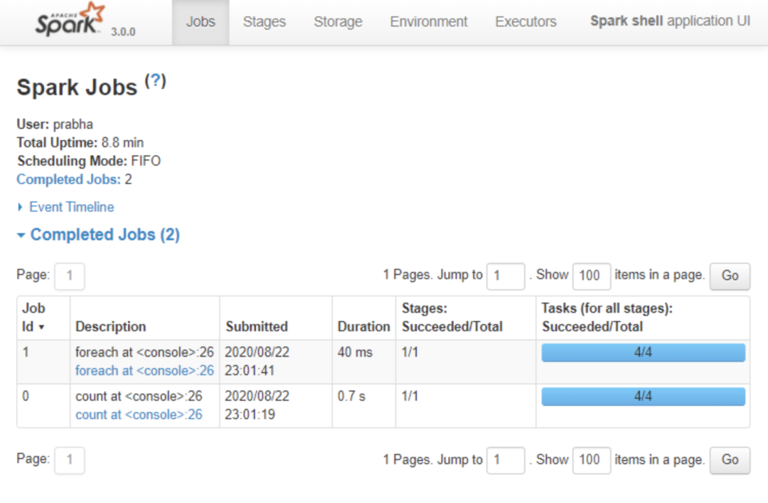 Spark-shell 还创建了一个 Spark 上下文 Web UI,默认情况下,它可以从 http://localhost:4041/