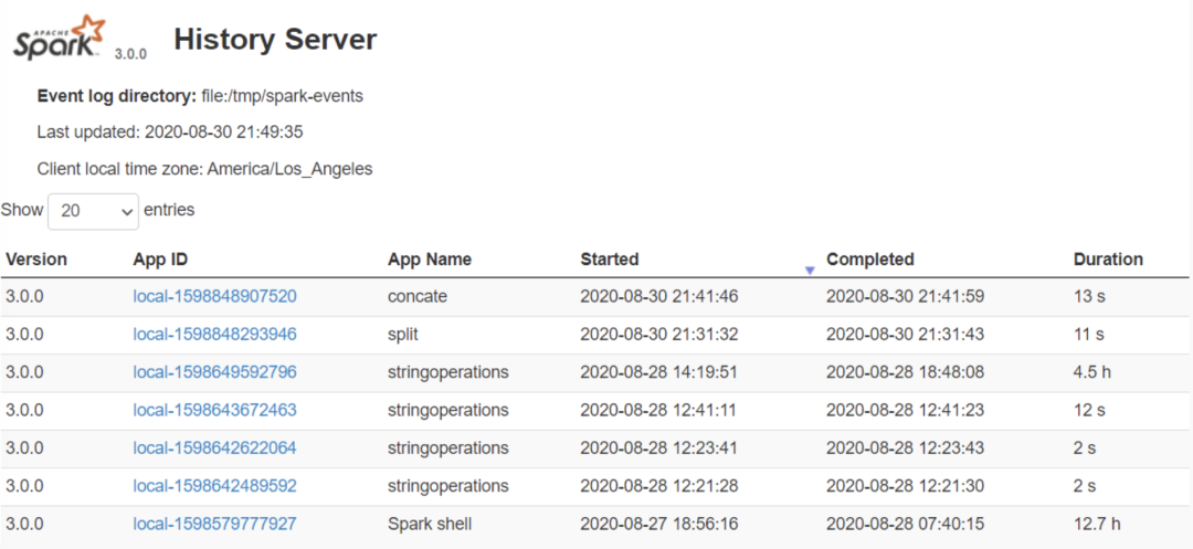 通过单击每个 App ID,将在 PySpark Web UI 中获取应用程序的详细信息。