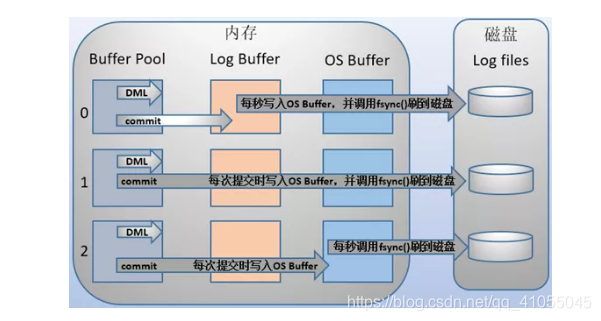 来控制刷盘时机,取值是 0、1 和 2三种值。0 表示事务提交后,每秒写入 OS Buffer 并调用 fsync() 写入日记磁盘中;1 表示每次事务提交会写入OS Buffer 并调用 fsync() 将日记写入日记磁盘中。2 表示事务每次提交写入到 OS Buffer,每秒调用 fsync() 写入日记磁盘。可见参数为 1 是最安全的,同时也是默认值。