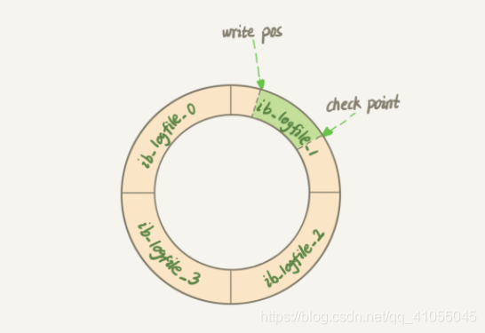 上图是日记磁盘的 Redo log 环形设计图(从头写,写到结束又从头开始写~循环)。write pos 和 check point 是两个指针,write pos指针指向当前日记文件写入的位置,check point 指针指向当前要擦除的开始位置。图中绿色部分是可以写入 Redo log 地方,每次写入,write pos 指针会顺时针推进,当然基本不会与 check point 指针重合,因为 MySQL 有这种机制去实现,每次触发检查点 checkpoint