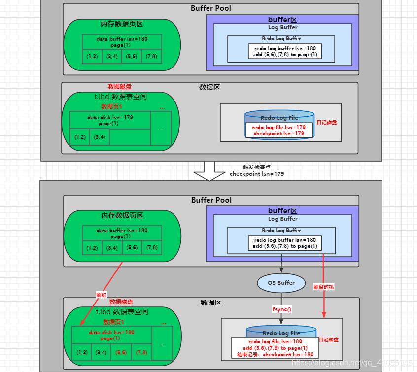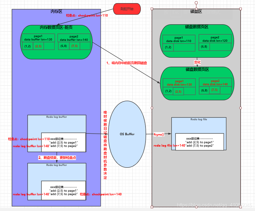 内存数据页:data buffer lsn;数据磁盘数据页:data disk lsn;