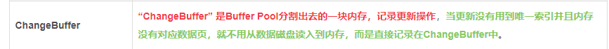 也就是说对于更新的操作,如果用到了 ChangeBuffer,更新的数据所在的数据页如果不在内存中,将不用去数据磁盘将数据页读到内存,而是将这一次操作记录在 ChangeBuffer 中,「ChangeBuffer 主要节省的则是随机读磁盘的 IO 消耗」,下次读取查询等读取数据页时用上 ChangeBuffer 中的记录即可。其实也是一种巧用内存的思想。