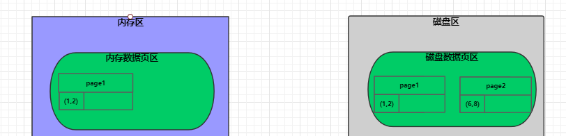 假设原来的数据如下图,数据页 page1 在内存中,page2 不在。插入的数据 (2,5) 落在 page1,数据 (7,5) 落在page2 中。