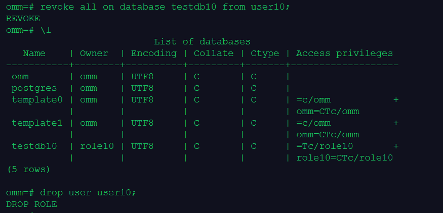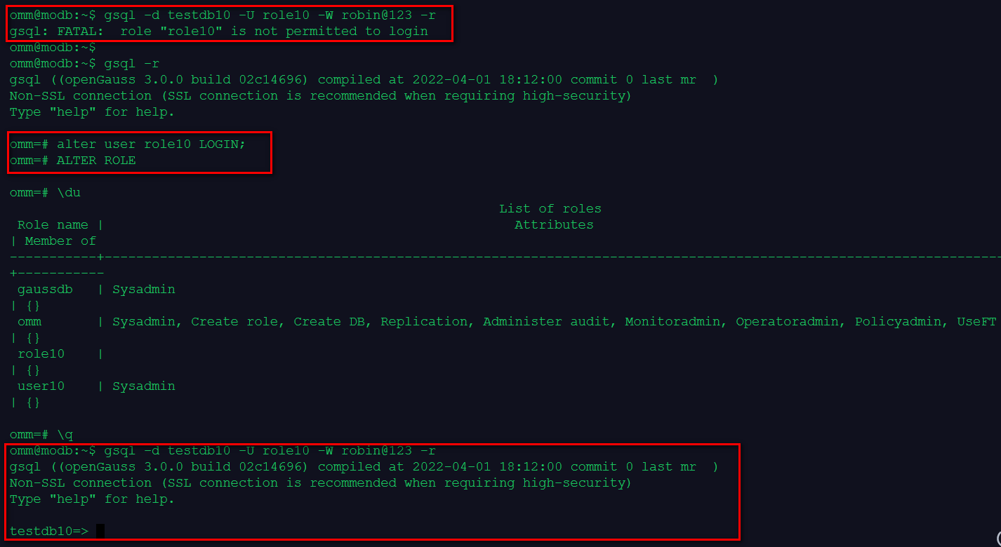 gsql -d testdb10 -U role10 -W robin@123 -r