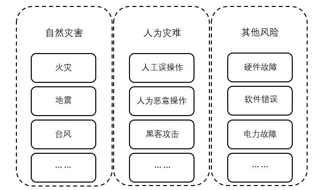 可以看出,容灾和灾难恢复是不同的,容灾强调的是在灾难发生时,保证业务系统持续不间断地运行的能力,而灾难恢复强调的是灾难之后系统的恢复能力。