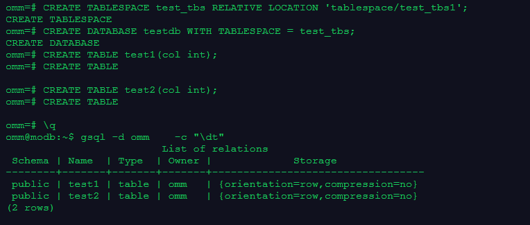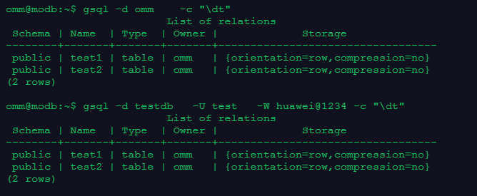 6,验证数据库omm的备份已经被恢复到数据库testdb