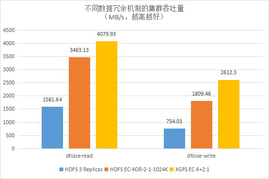 图 3. 不同数据冗余机制的集群吞吐性能对比