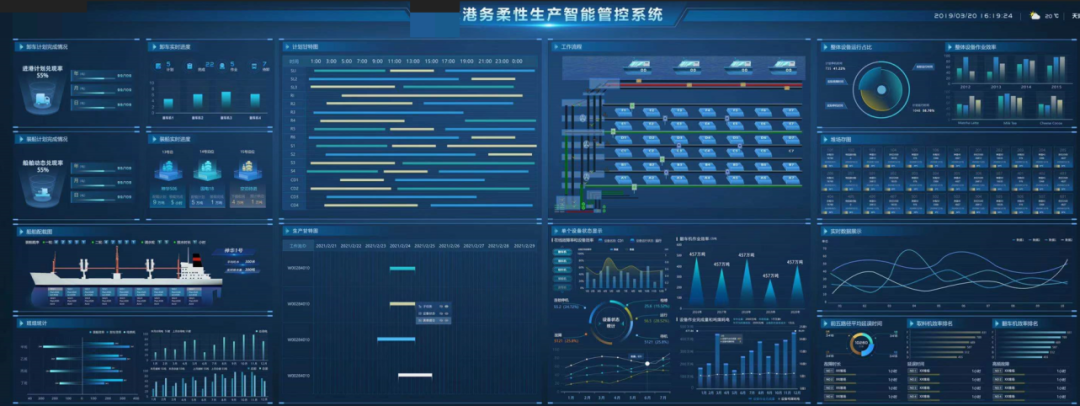 操作可视化:系统全力打造现代化智慧港口“最强大脑”,打破调度员专人电话协调组织的传统调度方式,将船舶,火车,现场设备维修计划等一切时实动态,通过可视化的智慧管控大屏、桌面客户端、手机APP进行动态实时展示,各生产参与方对全流程时间信息等一目了然,极大地缩短了生产组织中沟通协调时间,提升了全流程作业效率。 效能最大化:系统涵盖13个开发功能模块,120条拖拽式无代码开发可配BPMN工作流、6万点标准化数据秒级采集。经测算,每年可释放作业时间500小时释放预见性维修时间超逾240小时,释放产能6%以上,提升运量108万吨新增利润超1000万元实现全港装卸生产及流程路径。综合计算,打造最优计划以时间为突破口提升全港运力。
