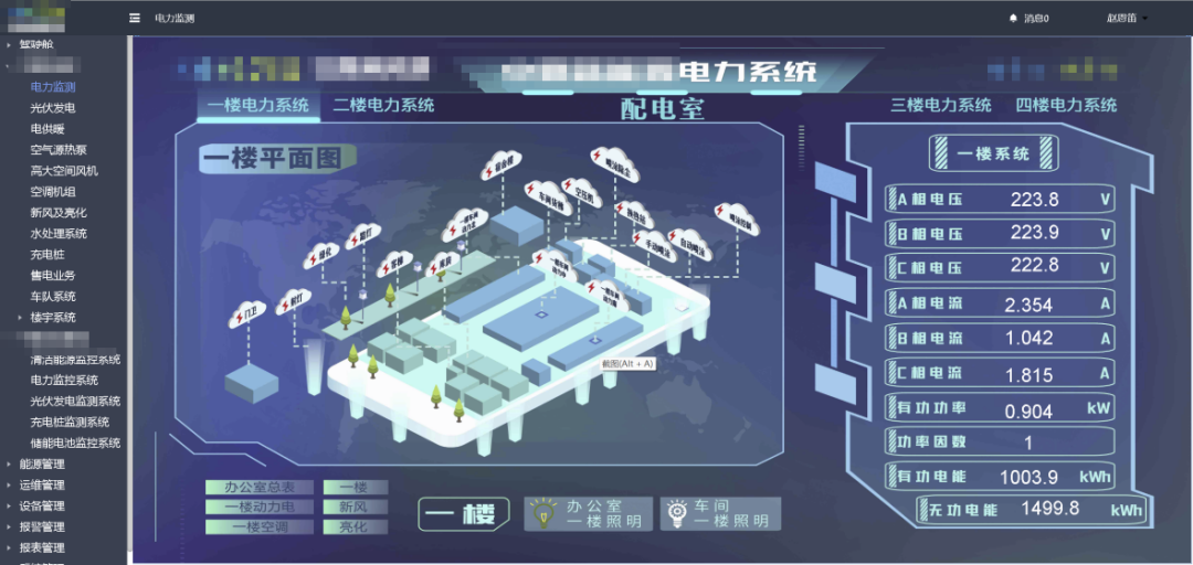 公司园区智慧能源管理系统:主要包含驾驶舱、GIS、楼宇系统、能源管理等9个模块。
