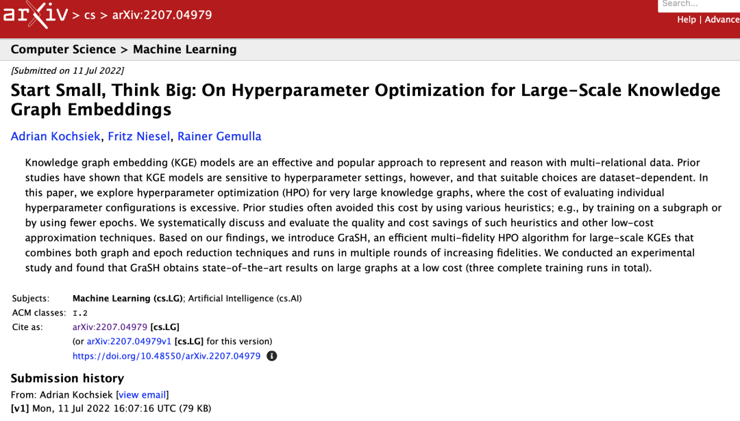 本周推荐的是近期发布于arxiv上的论文:Start Small, Think Big: On Hyperparameter Optimization for Large-Scale Knowledge Graph Embeddings, 设计了一种新的知识图谱嵌入表示的超参数优化方法,作者来自德国曼海姆大学。