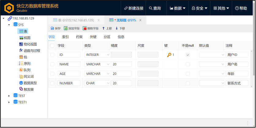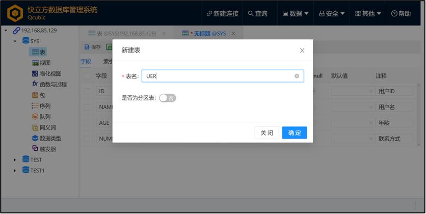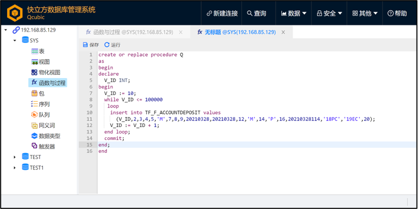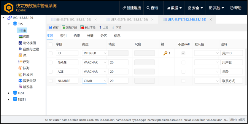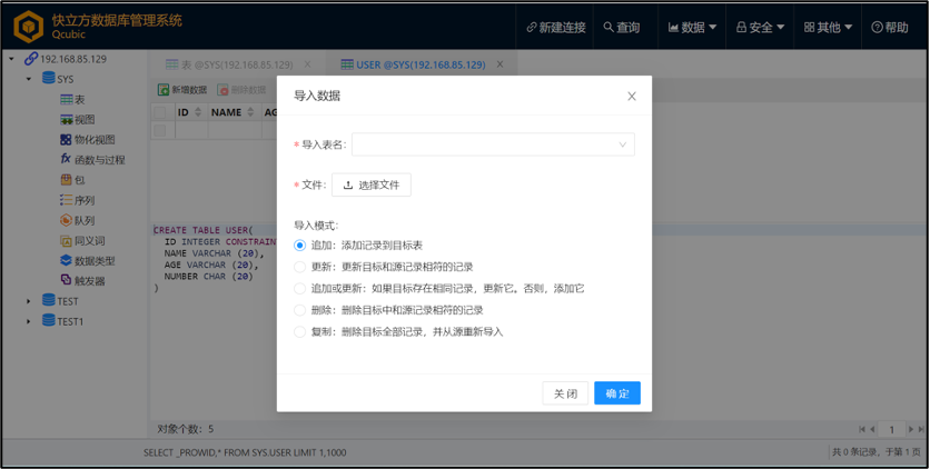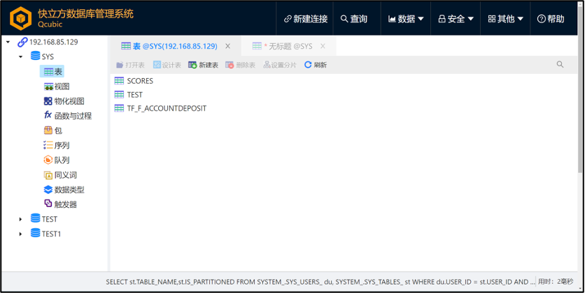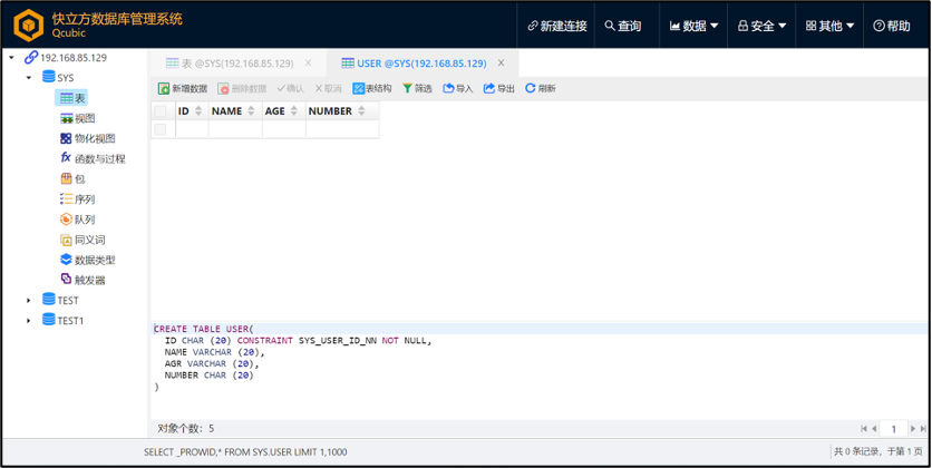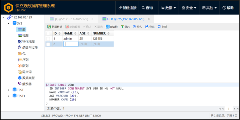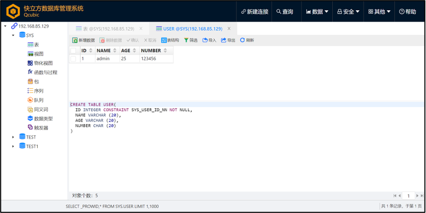 数据库对象创建与维护:支持Qcubic数据库所有数据库对象及数据的创建和维护操作,如表、表数据、视图、函数、存储过程、触发器等的创建、浏览、修改和删除。