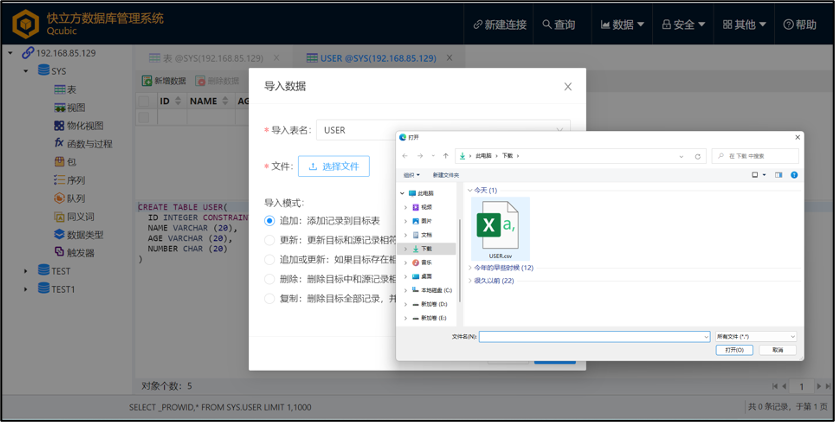 数据导入导出:支持将Qcubic数据库数据导出为标准化数据文件(如:CSV、TXT、Excel等),支持将标准化数据文件(如:CSV、TXT、Excel等)导入到Qcubic数据库中。