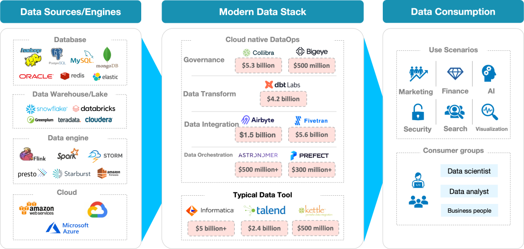 同构/异构数据源间的同步:用户的原始数据需要转移存储,或利用目标存储系统的查询、分析能力,如 Hive 数据、本地数据需要同步到 Snowflake、Clickhouse 等做快速查询; 数据上云:用户需要把云下的数据快速安全的迁移到云上存储并做进一步的业务分析,如线下 MySQL、Postgre 等到云上 RDS。