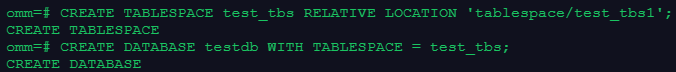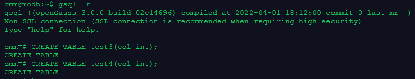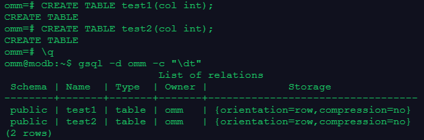 gsql -d testdb -U test -W huawei@1234 -c "\dt"