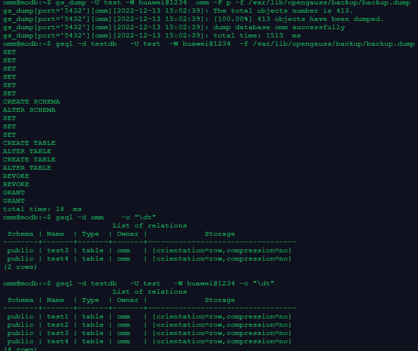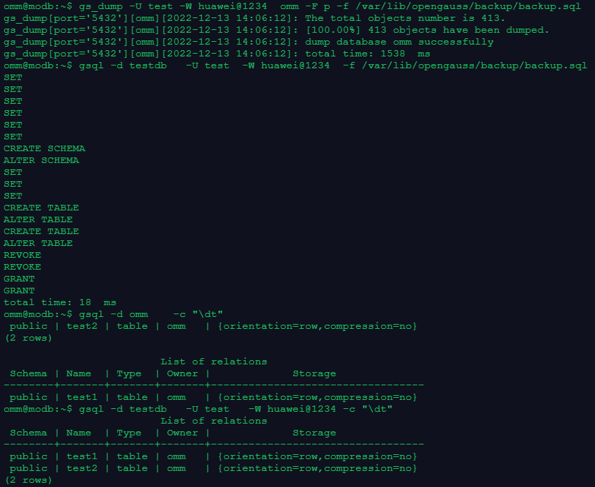2.逻辑备份和恢复案例2:使用dump格式进行备份和恢复omm数据库;
