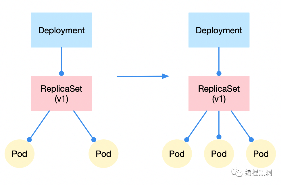 Deployment并不是直接管理Pod,而是通过ReplicaSet对象间接管理的,也就是说真正管理pod的其实是replicaSet对象.