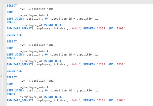 方法一:前端往后端传时间的时候,时间取值转换成字符串,只截取月日四个数字,比如'1225',然后传给后端。后端拿到,在MySQL语句处理的时候,我拿到员工的生日,一样截取月日。
