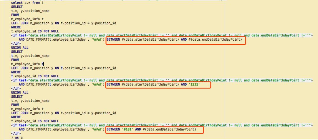 BETWEEN #{data.startDataBirthdayPoint} AND '1231'BETWEEN '0101' AND #{data.endDataBirthdayPoint}用这两个来处理跨年。不管用户选择是哪一年,都好使。