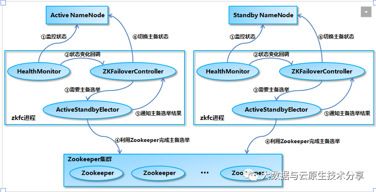 ActiveStandbyElector 在主备选举完成后,会回调 ZKFailoverController 的相应方法来通知当前的 NameNode 成为主 NameNode 或备 NameNode。