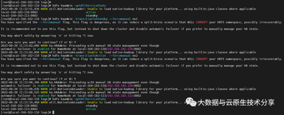 hdfs haadmin -transitionToStandby --forcemanual nn1