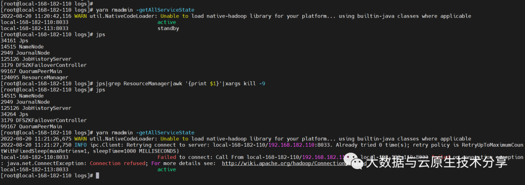 这就是持久化数据的高可用(HDFS)和无状态高可用(YARN)的区别了;