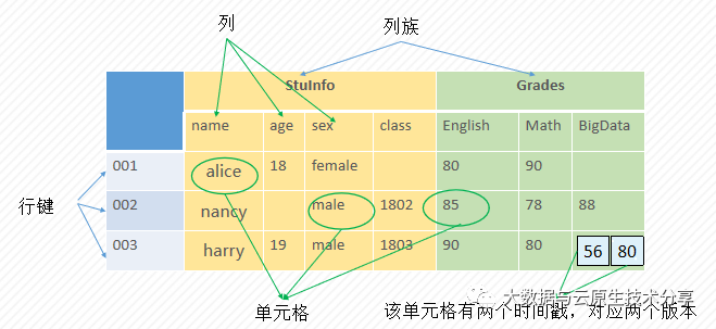 表(Table):Hbase采用表来组织数据;一个表由一个或多个列族组成。数据属性,比如超时时间(TTL)、压缩算法(COMPRESSION)等,都在列族的定义中定义。