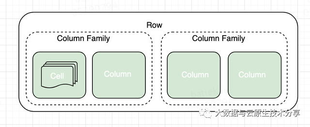 行(Row):一个行包含多个列,这些列通过列族来分类。行中数据所属列族只能只能从该表所定义的列族选择,否则会得到一个NoSuchColumnFamilyException。由于HBase是一个列式数据库,所以一个行中的数据可以分布在不同的RegionServer上。