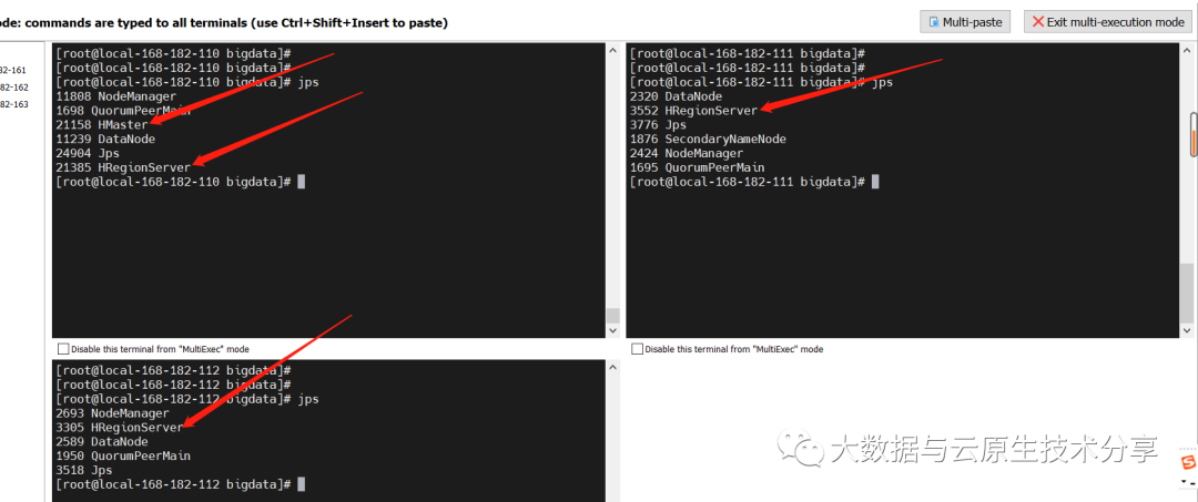 | local-168-182-112 | 192.168.182.112 | NodeManager、HRegionServer、DataNode、QuorumPeerMain |