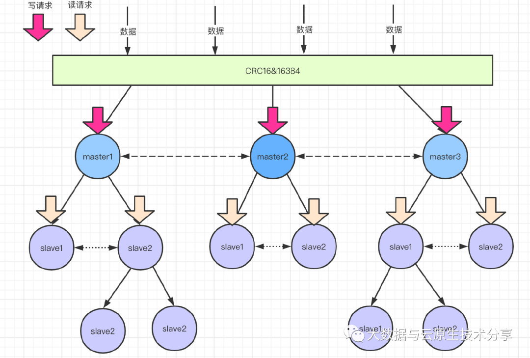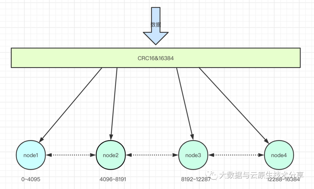 集群的键空间被分割为16384个slots(即hash槽),通过hash的方式将数据分到不同的分片上的。