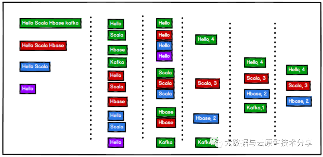 val stringList = List("Hello Scala Hbase kafka", "Hello Scala Hbase", "Hello Scala", "Hello")
